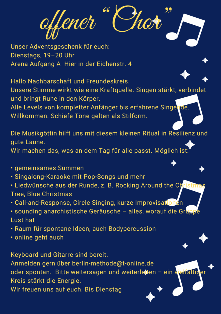 Für laute und leise Menschen, auch mit verlorerer, schlechter, mittelmäßiger Stimme, Unmusiklität und inneren Widerständen, mit ein wenig Neugier und Lust zu tönen, summen, singen, rappen, Geräusche zu machen.